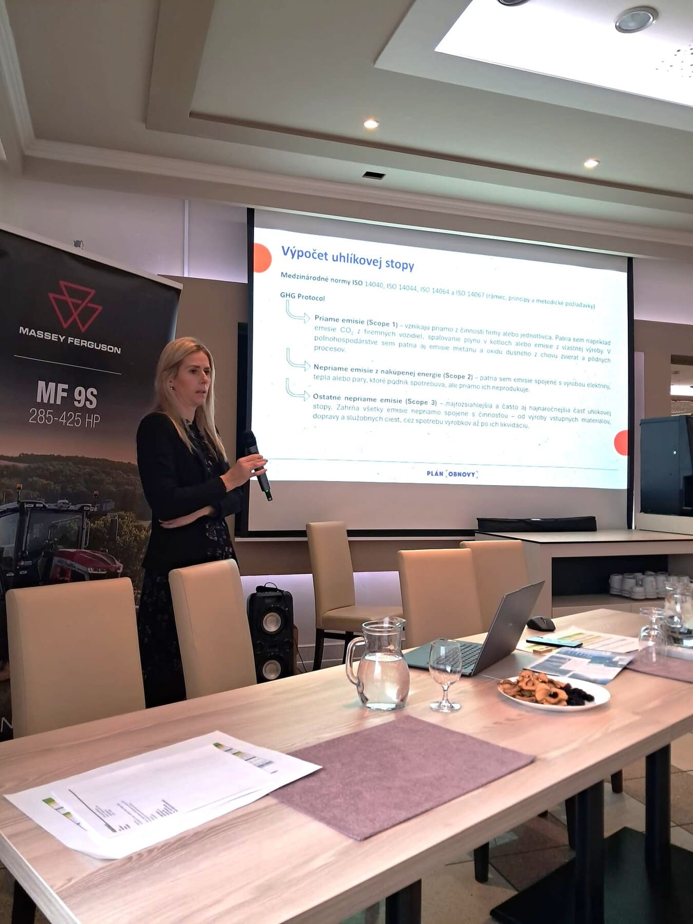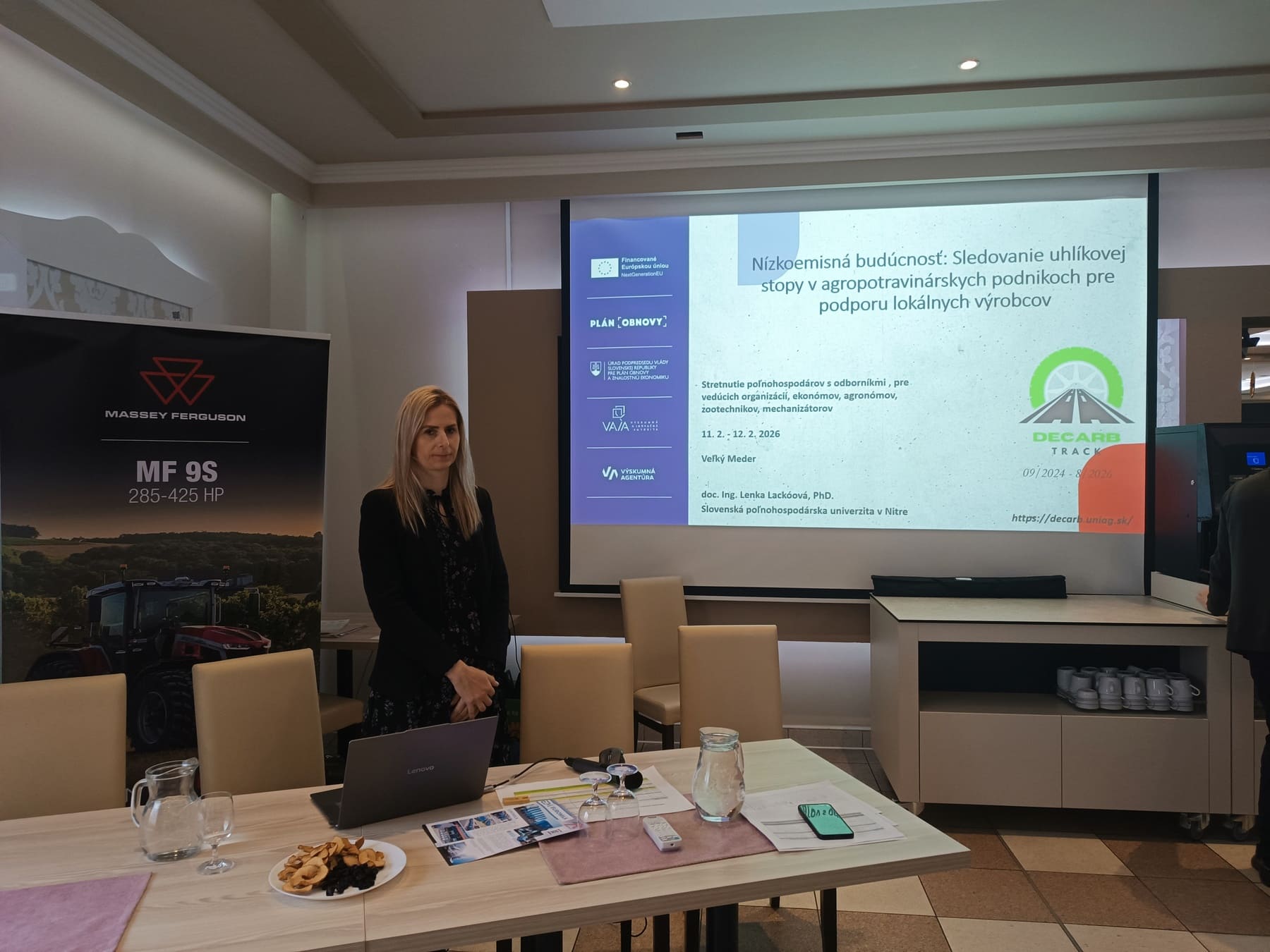 - Názov prednášky: "Uhlíková stopa" : motivácia pre jej riešenie pre udržateľnosť agropotravinárskeho sektora - uhlíková kalkulačka.
